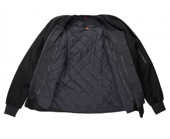 Main fabric:69% Cotton 29.5% Nylon 1.5% Elastane Lining: 100% Polyester Filling: 100% Recycled PolyesterMilitary-inspired unisex waterproof motorcycle bomber jacket