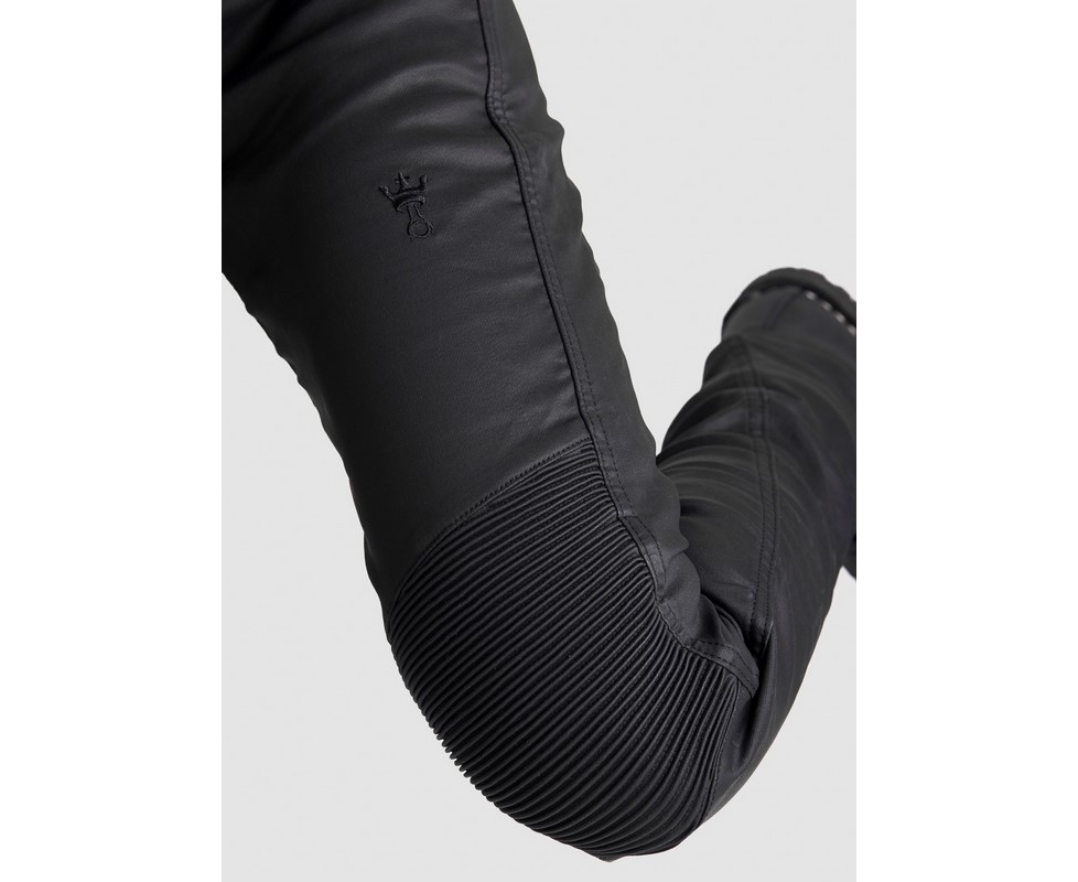 66% Cotton 30% Polyester 4% Elastane Protective lining: 50% Aramid 50% Coolmax polyesterSkinny-fit armored motorcycle jeans for women. Regular waist