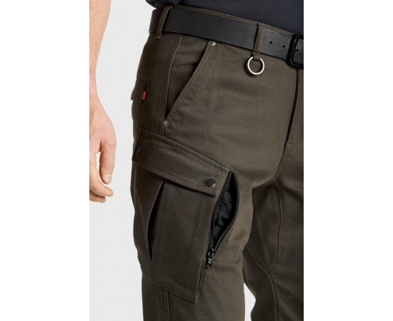 For the perfect fit, please measure your best-fitting jeans and compare it against our measuring guide, Enjoy the power to ride without limits with our new olive color MARK KEV 02 motorcycle jeans. The secret lies in cargo-fit, made of olive 12.5oz Cordura® super-stretch denim. Ride at ease with comfort and safety, thanks to button adjustable cuffs, high-quality reinforced Kevlar® stitches, and a thick interlock-knit lining made of DuPont™ Kevlar® fibers. Two-position knee armor pockets protect against the unthinkable, while a flawless European design guarantees durability, functionality, and craftsmanship precision you can trust. It comes with super slim Triple Flex knee and hip armor., Enjoy CE officially approved PPE under EN 17092, level AA (35 meters slide distance) safety.