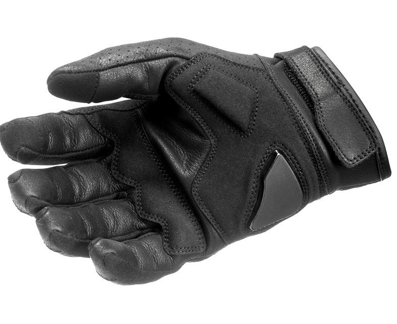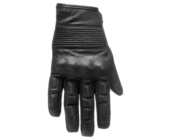 For the perfect fit, please measure your hand properly, or measure your best-fitting gloves and compare them to the size guide of this product., Protect your hands and enjoy a hassle-free ride with touchscreen-compatible Onyx Black 1 leather motorcycle gloves. Made out of matte black cowhide leather, they are fully perforated for extra cooling thus are suitable for a hot summer day. Featuring an ergonomic design with pre-curved finger construction and elastic inserts between fingers, these gloves are abrasion resistant, have a flexible TPU knuckle guard, integrated padding protection on each finger, and PU slider and leather padding on the palm., CE certified Level 1 (EN 13594:2015).