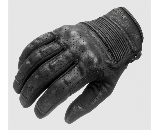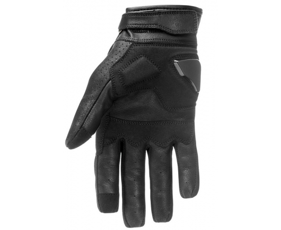 For the perfect fit, please measure your hand properly, or measure your best-fitting gloves and compare them to the size guide of this product., Protect your hands and enjoy a hassle-free ride with touchscreen-compatible Onyx Black 1 leather motorcycle gloves. Made out of matte black cowhide leather, they are fully perforated for extra cooling thus are suitable for a hot summer day. Featuring an ergonomic design with pre-curved finger construction and elastic inserts between fingers, these gloves are abrasion resistant, have a flexible TPU knuckle guard, integrated padding protection on each finger, and PU slider and leather padding on the palm., CE certified Level 1 (EN 13594:2015).