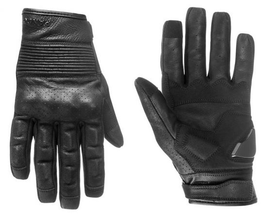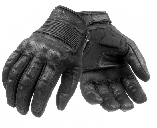 For the perfect fit, please measure your hand properly, or measure your best-fitting gloves and compare them to the size guide of this product., Protect your hands and enjoy a hassle-free ride with touchscreen-compatible Onyx Black 1 leather motorcycle gloves. Made out of matte black cowhide leather, they are fully perforated for extra cooling thus are suitable for a hot summer day. Featuring an ergonomic design with pre-curved finger construction and elastic inserts between fingers, these gloves are abrasion resistant, have a flexible TPU knuckle guard, integrated padding protection on each finger, and PU slider and leather padding on the palm., CE certified Level 1 (EN 13594:2015).