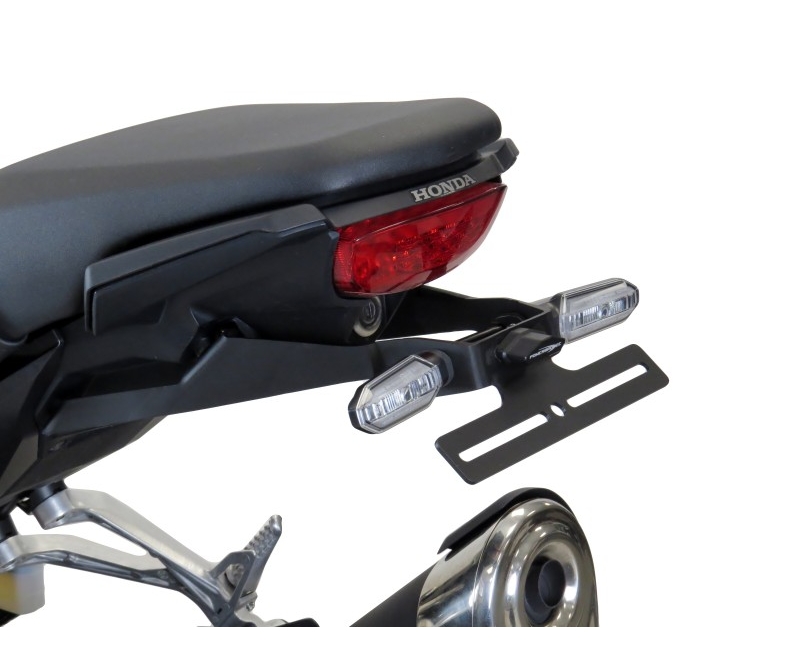 Eliminators offer a great streamlined alternative to the unattractive mudguard/number plate brackets fitted to most modern bikes.- Black textured finish- LED number plate light included- Reflector/Number plate support included- All required fixings are supplied in the kit- Can be used with OEM indicators or aftermarket onesDispatched Same Day (if ordered before 12pm midday and in stock)