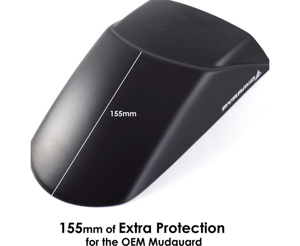The Pyramid front mudguard extension the Extenda Fenda is one of our trademark products which we manufacture from high quality ABS. The Extenda Fenda offers a durable and long-lasting extension to your front mudguard. This product will help keep your exhaust headers and lower engine free from dirt as well as protecting your expensive radiator from stone damage. Specifically designed to follow the contour of your motorcycle's front guard our Extenda Fenda is supplied with both plastic rivets for mechanical fitment and a sheet of our specially sourced 'Stick Fit Pads' for those customers who would prefer not to drill their front mudguard. Our Extenda Fenda is simple to install and will arrive safely packaged together with comprehensive fitting instructions and all necessary fittings as detailed above.