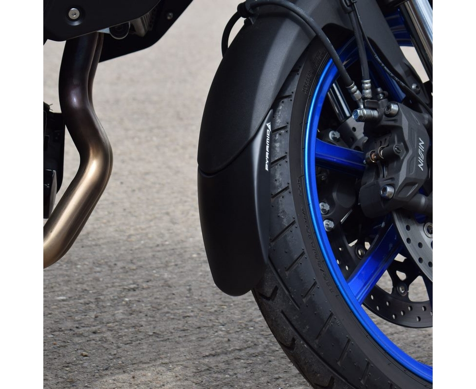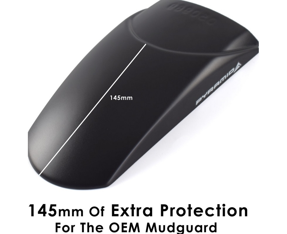 The Pyramid front mudguard extension the Extenda Fenda is one of our trademark products which we manufacture from high quality ABS. The Extenda Fenda offers a durable and long-lasting extension to your front mudguard. This product will help keep your exhaust headers and lower engine free from dirt as well as protecting your expensive radiator from stone damage. Specifically designed to follow the contour of your motorcycle's front guard our Extenda Fenda is supplied with both plastic rivets for mechanical fitment and a sheet of our specially sourced 'Stick Fit Pads' for those customers who would prefer not to drill their front mudguard. Our Extenda Fenda is simple to install and will arrive safely packaged together with comprehensive fitting instructions and all necessary fittings as detailed above.