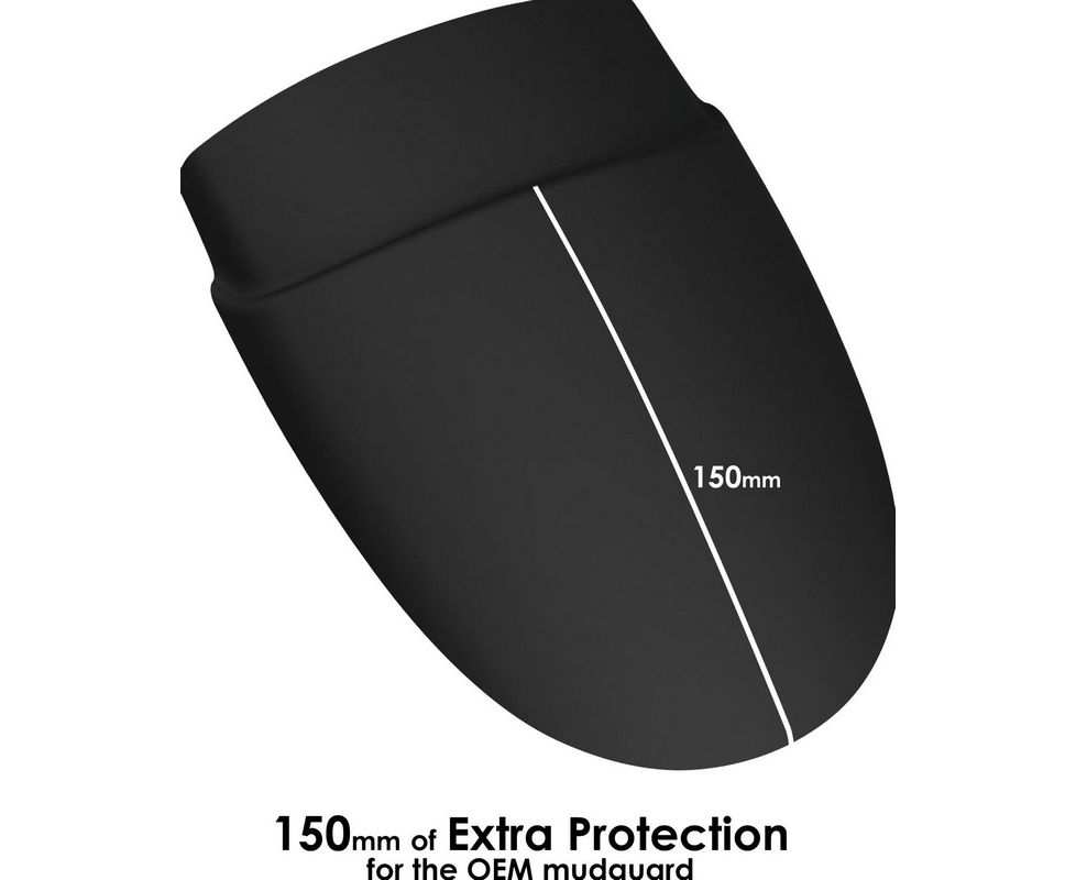 The Pyramid front mudguard extension the Extenda Fenda is one of our trademark products which we manufacture from high quality ABS. The Extenda Fenda offers a durable and long-lasting extension to your front mudguard. This product will help keep your exhaust headers and lower engine free from dirt as well as protecting your expensive radiator from stone damage. Specifically designed to follow the contour of your motorcycle's front guard our Extenda Fenda is supplied with both plastic rivets for mechanical fitment and a sheet of our specially sourced 'Stick Fit Pads' for those customers who would prefer not to drill their front mudguard. Our Extenda Fenda is simple to install and will arrive safely packaged together with comprehensive fitting instructions and all necessary fittings as detailed above.