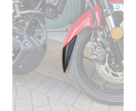 - Click here for fitting instructionsManufactured from ABSAdding an extension to your OEM Front GuardThe Pyramid front mudguard extension the Extenda Fenda is one of our trademark products which we manufacture from high quality ABS. The Extenda Fenda offers a durable and long-lasting extension to your front mudguard. This product will help keep your exhaust headers and lower engine free from dirt as well as protecting your expensive radiator from stone damage. Specifically designed to follow the contour of your motorcycle's front guard our Extenda Fenda is supplied with both plastic rivets for mechanical fitment and a sheet of our specially sourced 'Stick Fit Pads' for those customers who would prefer not to drill their front mudguard. Our Extenda Fenda is simple to install and will arrive safely packaged together with comprehensive fitting instructions and all necessary fittings as detailed above.