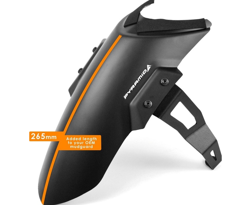 The Pyramid Extenda Fenda EXTRA caters for those riders who seek a practical and substantial solution for protecting their motorcycle from the elements. Customer comments and suggestions always prove invaluable to the Pyramid design team and longer front mudguards have always been a frequent topic of conversation.