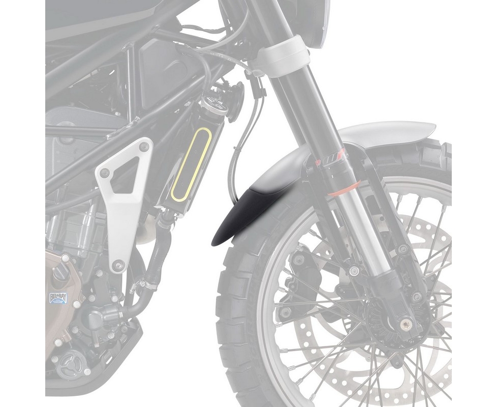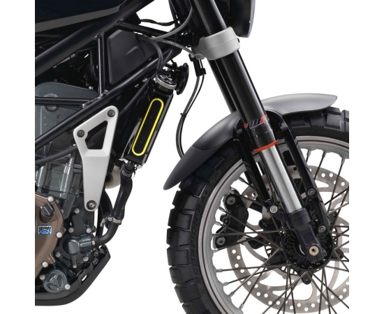Husqvarna Vitpilen 401 & Svartpilen 401 Extenda Fenda. Our front mudguard extension, the Extenda Fenda, is one of our trademark products which we manufacture from high quality ABS. The Extenda Fenda offers a durable and long-lasting extension to your front mudguard. This product will help keep your exhaust headers and lower engine free from dirt, as well as protecting your expensive radiator from stone damage. Specifically designed to follow the contour of your bike's front guard, our Extenda Fenda is supplied with both plastic rivets for mechanical fitment and a sheet of our specially sourced 'Stick Fit Pads' for those customers who would prefer not to drill their front mudguard. Our Extenda Fenda is simple to install and will arrive safely packaged, together with comprehensive fitting instructions and all necessary fittings as detailed above.