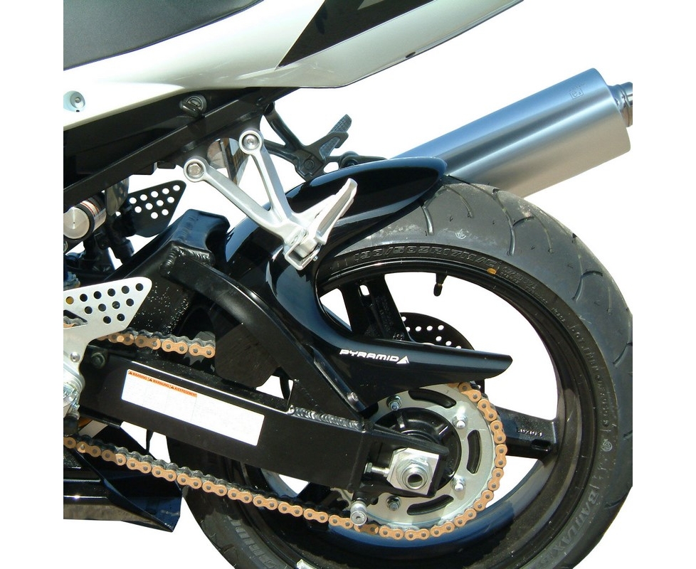Our hugger range is being expanded with new models all the time.^^Where possible we incorporate an integral chainguard into the design, along with an extension below the swinging arm to protect the suspension linkage and rear shock.^^Pyramid huggers are bike-specific to ensure a perfect fit, and are made in a range of materials including ABS plastic, glass-reinforced plastic and carbon fibre.