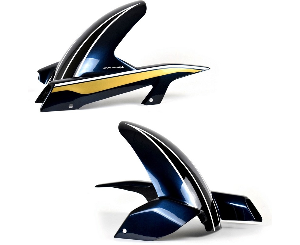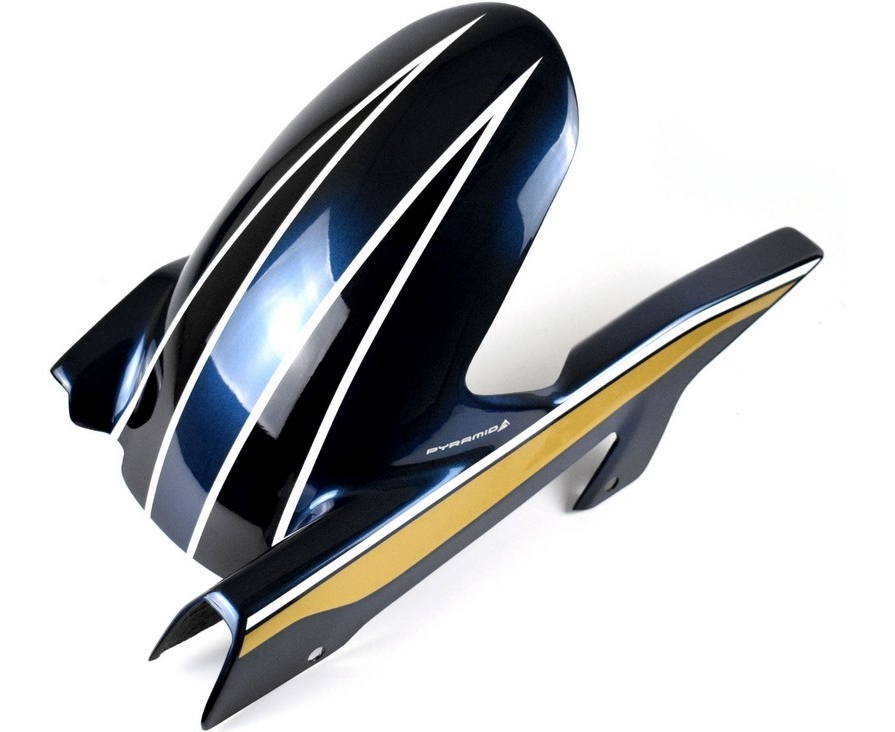 - Click here for fitting instructionsManufactured from Fibreglass with a hand painted finishDesigned specifically for your bike with an incorporated chainguardPyramid Huggers are one of our trademark products designed specifically for your motorcycle and offering substantial added protection and individual styling. Where possible we incorporate protection that extends below the swingarm together with a built-in chainguard to replace your existing guard meaning that your shock absorber and chain are fully protected. Available in a wide range of colour schemes our Huggers will arrive safely packaged together with comprehensive fitting instructions and any additional fittings which may be required. No modification to your motorcycle is necessary. We always advise the use of our Venture Shield protection film to minimise the effects of stone chips and cracking especially on painted products which sit low to the ground. Without Venture Shield fitted to these low forward facing parts of your bodywork then unfortunately damage from stones and other debris is unavoidable! ツ