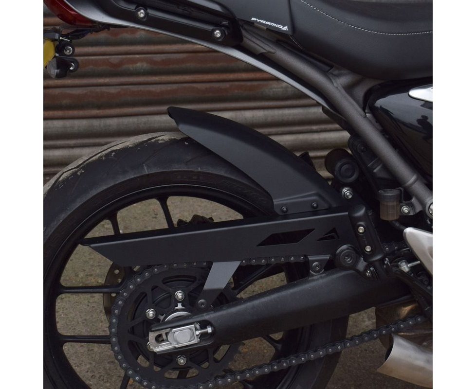 Pyramid Huggers are one of our trademark products designed specifically for your motorcycle and offering substantial added protection and individual styling. Where possible we incorporate protection that extends below the swingarm together with a built-in chainguard to replace your existing guard meaning that your shock absorber and chain are fully protected.