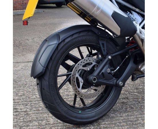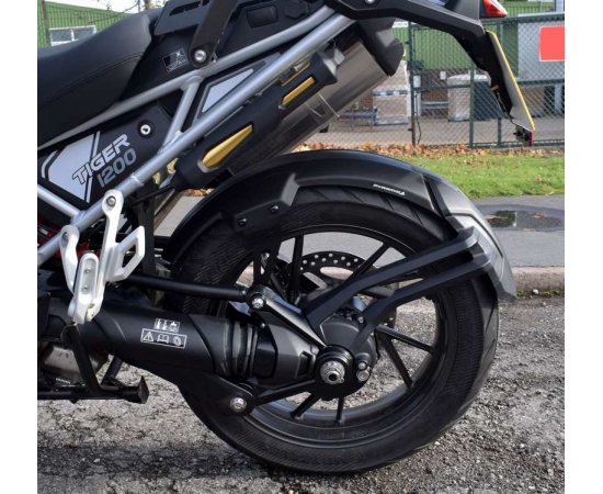 Full wheel rear mudguards. A thing of the past perhaps? This new Pyramid Hugger option for the 2022 Triumph Tiger 1200 strives to be the most practical Hugger available in the marketplace to date. By linking into the existing Triumph rear spray guard this Hugger offers complete radial coverage (including the spray guard) of over 800mm keeping both the rider and the underside of the motorcycle much cleaner. The unique approach of this “linked-in” design means that this new accessory offers the very best coverage for your money doing so much more than a regular Hugger!