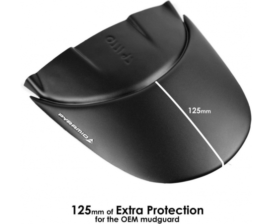 - Click here for fitting instructionsManufactured from ABSAdding an extension to your OEM Rear GuardPyramid Hugger Extensions are manufactured from high quality ABS or carbon fibre and offer a durable and long lasting extension to your motorcycle's OEM hugger. These products are specifically designed to follow the contour of your motorcycle's existing rear hugger for the perfect fit. Our Hugger Extensions are supplied with plastic rivets for mechanical fitment together with our specially sourced 'Stick-Fit Pads' for those who would prefer not to drill the existing hugger. Our Hugger Extension is simple to install and will arrive safely packaged complete with comprehensive fitting instructions and any additional fittings which may be required. No modification to your motorcycle is necessary if you choose to fit using our Stick Fit Kit only. ツ