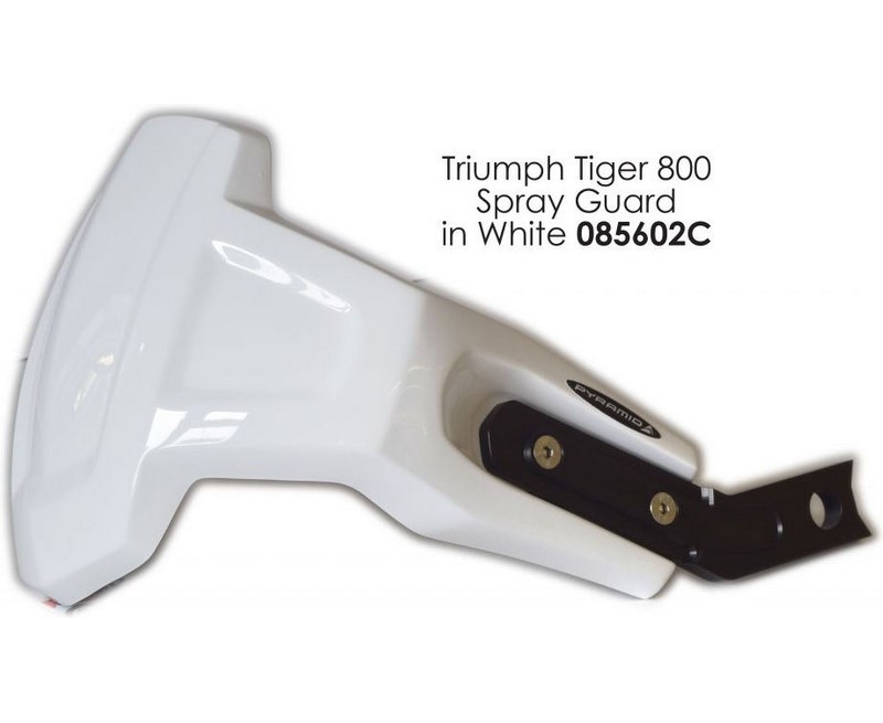 Our unique SPRAY GUARD for the Triumph Tiger 800 in Gloss White helps protect both rider, passenger and top case from water spray thrown up by the rear wheel. The SPRAY GUARD is manufactured from sturdy Glass Reinforced Plastic (GRP - fibreglass), adding only minimal unsprung weight to the swinging arm. NB : this product is suitable for use with the Pyramid rear Hugger. This accessory will fit on any version of the Tiger 800 It is important to follow the fitting instructions for this SPRAY GUARD very carefully. Please see above for the blue link to our comprehensive fitting instructions.^^This product fits all models - including XC/XCX/XCA/XR/XRT/XRX