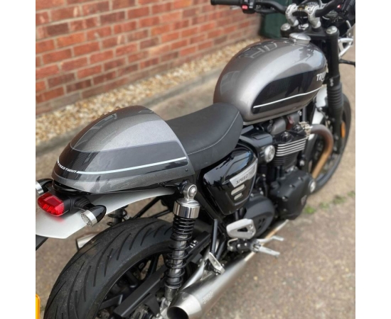 Click here for fitting instructions ?️Manufactured from ABS with a hand painted colour-matched finishDesigned in the UK specifically for your Speed Twin please note our cowl is designed to fit the standard seat only.Pyramid Seat Cowls are one of our trademark products designed specifically for your motorcycle to offer you a single seat race look with individual styling. With simplistic fitment arrangements and a range of colour schemes available our Seat Cowls will arrive safely packaged together with comprehensive fitting instructions and any additional fittings which may be required. No modification to your motorcycle is necessary. We always advise the use of our Venture Shield protective film to minimise the effects of stone chips and cracking especially on painted products which sit low to the ground. Without Venture Shield fitted to these low forward facing parts of your bodywork then unfortunately damage from stones and other debris is unavoidable!