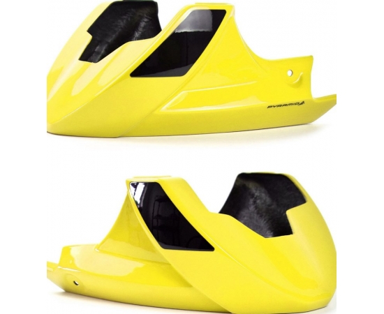 Pyramid Belly Pans are one of our trade mark products. Designed specifically for your motorcycle and incorporating styling to accentuate the contours of your existing bodywork our Belly Pans also offer added protection to your exhaust down-pipes and lower engine.Available in a range of colour schemes this product will arrive carefully packaged together with a full fitting kit comprehensive fitting instructions and any brackets which may be required. No modification to your motorcycle is necessary.We always advise the use of our Venture Shield protection film to minimise the effects of stone chips and cracking during use especially on painted products which sit low to the ground. Without Venture Shield fitted to these low forward facing parts of your bodywork then unfortunately damage from stones and other debris is unavoidable!