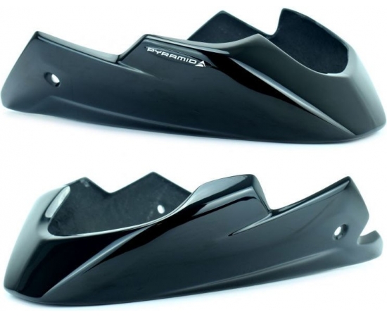 Gloss black belly pan for the MT09/FZ09. When you purchase a belly pan or fairing from Pyramid, you can be sure that it will fit your bike perfectly.^^All our products are designed specifically for each bike model and can be supplied either colour-matched or unpainted.^NB: this belly pan is unsuitable for both the MT09 Tracer and any bikes fitted with an Akrapovic exhaust system.^UPDATE JULY 2017 This Belly Pan offers comprehensive protection, but in doing so it also reduces ground clearance. Two points must therefore be taken into consideration when deciding to purchase or install this product - Lowering of the ride height with non standard suspension linkages or dropping the fork legs through the yokes will risk grounding out the Belly Pan. Excess weight may also risk grounding out. The combined weight of Rider, Passenger and Luggage should not exceed 185Kg. Grounding Out will result in non-structural damage to the Belly Pan's cosmetic finish for which Pyramid cannot be held responsible.^OTHER ITEMS WHICH MAY BE OF INTEREST: Click here for MT09 Extenda Fenda range Click here for MT09 Ductail Click here for MT09 Huggers Click here for MT09 Hugger Extensions Click here for MT09 Infill Panels Click here for MT09 Radiator Cheeks Click here for MT09 Seat Cowls Click here for MT09 Fly Screens Click here for all MT09 Screens Click here for MT09 Spray Guards Click here for MT09 Radiator Guard Click here for MT09 Undertray