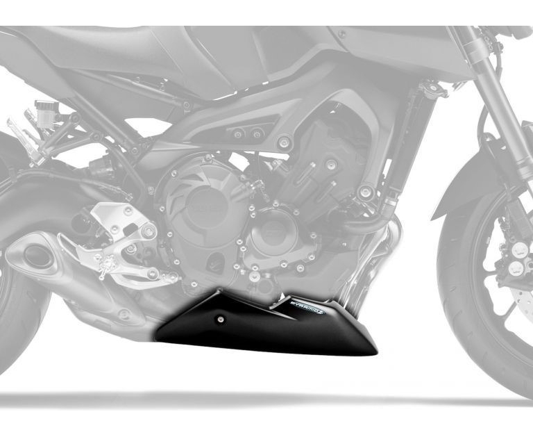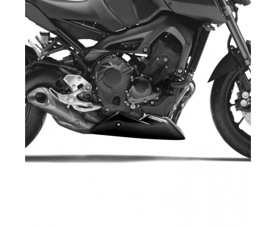Matt black belly pan for the MT09/FZ09. When you purchase a belly pan or fairing from Pyramid, you can be sure that it will fit your bike perfectly.^^All our products are designed specifically for each bike model and can be supplied either colour-matched or unpainted.^^NB: this belly pan is unsuitable for both the MT09 Tracer and any bikes fitted with an Akrapovic exhaust system.^UPDATE JULY 2017 This Belly Pan offers comprehensive protection, but in doing so it also reduces ground clearance. Two points must therefore be taken into consideration when deciding to purchase or install this product - Lowering of the ride height with non standard suspension linkages or dropping the fork legs through the yokes will risk grounding out the Belly Pan. Excess weight may also risk grounding out. The combined weight of Rider, Passenger and Luggage should not exceed 185Kg. Grounding Out will result in non-structural damage to the Belly Pan's cosmetic finish for which Pyramid cannot be held responsible.^OTHER ITEMS WHICH MAY BE OF INTEREST: Click here for MT09 Extenda Fenda range Click here for MT09 Ductail Click here for MT09 Huggers Click here for MT09 Hugger Extensions Click here for MT09 Infill Panels Click here for MT09 Radiator Cheeks Click here for MT09 Seat Cowls Click here for MT09 Fly Screens Click here for all MT09 Screens Click here for MT09 Spray Guards Click here for MT09 Radiator Guard Click here for MT09 Undertray