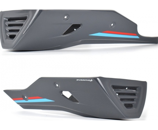 Pyramid Belly Pans are one of our trade mark products. Designed specifically for your motorcycle and incorporating styling to accentuate the contours of your existing bodywork our Belly Pans also offer added protection to your exhaust downpipes and lower engine.Available in a range of colour schemes this product will arrive carefully packaged together with a full fitting kit comprehensive fitting instructions and any bracketry which may be required. No modification to your motorcycle is necessary.We always advise the use of our Venture Shield protection film to minimise the effects of stone chips and cracking during use especially on painted products which sit low to the ground. Without Venture Shield fitted to these low forward facing parts of your bodywork then unfortunately damage from stones and other debris is unavoidable!