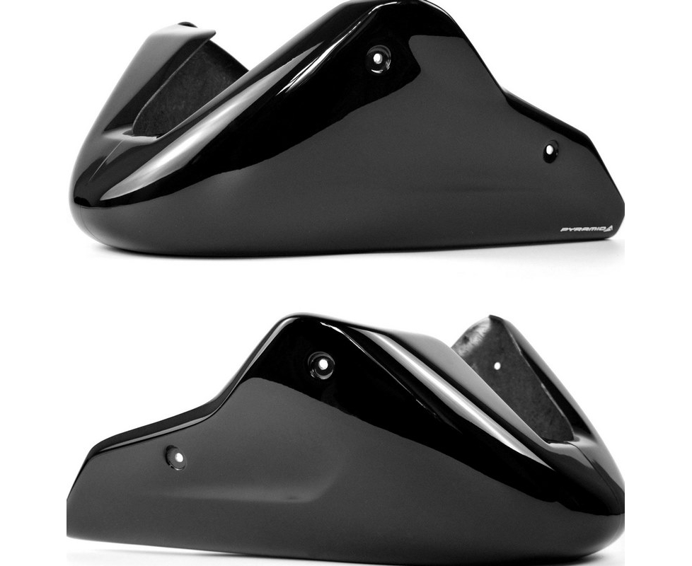 Click here for fitting instructions ?️Manufactured from FibreglassDesigned to fit with stock exhausts.Pyramid Belly Pans are one of our trade mark products. Designed specifically for your motorcycle and incorporating styling to accentuate the contours of your existing bodywork our Belly Pans also offer added protection to your exhaust downpipes and lower engine.Available in a range of colour schemes this product will arrive carefully packaged together with a full fitting kit comprehensive fitting instructions and any bracketry which may be required. No modification to your motorcycle is necessary.We always advise the use of our Venture Shield protection film to minimise the effects of stone chips and cracking during use especially on painted products which sit low to the ground. Without Venture Shield fitted to these low forward facing parts of your bodywork then unfortunately damage from stones and other debris is unavoidable!