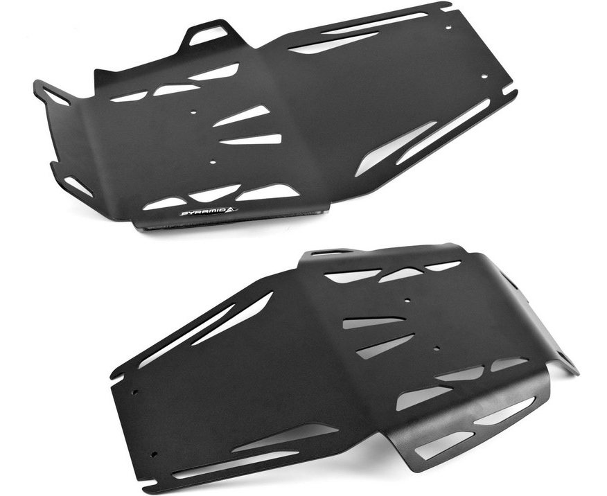 - Click here for fitting instructionsManufactured from aluminium with carbon steel bracketsDesigned specifically for your bikeThis Pyramid Engine Plate is designed to protect and cover the underside of the motorcycle from debris and spray thrown up by the front wheel and other road users. Please see our instructions above for more info on assembly. Our products will arrive safely packaged together with comprehensive fitting instructions and any additional fittings which may be required. No modification to your motorcycle is necessary. ツ