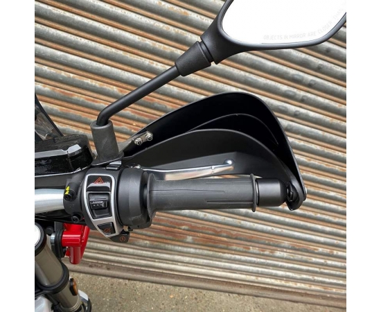 - Click here for fitting instructionsManufactured from ABS and steelOffering added protection and improved AerodynamicsPyramid Handguard Extensions have been designed specifically for your motorcycle and follow the contour of the existing Handguards perfectly. Formed from either a highly durable ABS or High Impact Acrylic they will offer added protection from dirt and debris thrown up by other road users as well as from cold and wet weather. Our Handguard Extensions will arrive safely packaged together with comprehensive fitting instructions and any additional fittings which may be required. No modification to your motorcycle is necessary. ツ