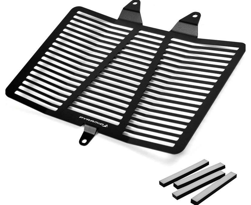 Click here for fitting instructions ?️Manufactured from AluminiumLight weight and easy to fit protecting your expensive radiator from flying stones and debrisPyramid Radiator Guards are manufactured from Aluminium and are designed to offer superior protection for your expensive radiator whilst also affording your motorcycle a more refined look. Where possible we have also incorporated the name of the motorcycle model into the design of the Radiator Guard to add that extra bit of individuality. Our Radiator Guards will arrive safely packaged together with comprehensive fitting instructions and any additional fittings which may be required. No modification to your motorcycle is necessary.