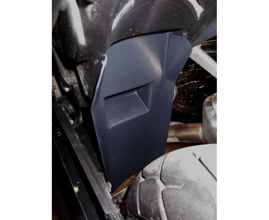 Shock Shield designed to fit the Triumph Explorer 1200. An alternative to the more familiar hugger option. The shock shield fits effortlessly to the undertail of the Explorer 1200, extending down between the front of the rear tyre and the exposed rear shock absorber. Once fitted, the Shock Shield helps eliminate the spray thrown up by the rear tyre, reducing the time needed to clean the shock and thus helping to maintain a healthier rear shock.^^To add extra protection from onroad or offroad annoyances thrown up by either front or rear wheels, you may wish to consider purchasing our Extenda Fenda or, as an alternative to the shock shield, our Hugger for this bike. NB : this product is not suitable for use with our rear hugger, but it is entirely compatible with our Explorer spray guard. OTHER ITEMS WHICH MAY BE OF INTEREST: Click Here for Explorer 1200 Extenda Fenda options Click Here for Explorer 1200 Hugger options Click Here for Explorer 1200 Spray Guard Click Here for Explorer 1200 Headlight Cover options Click Here for Explorer 1200 Shock Shield Click Here for Explorer 1200 Engine guard Click Here for Explorer 1200 Screen options Click Here for Explorer 1200 Mirror options Click Here for Pyramid No Screws Glue