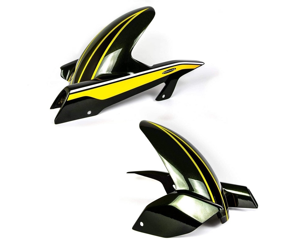 Manufactured from FibreglassDesigned specifically for your bike with an incorporated chainguardPyramid Huggers are one of our trademark products designed specifically for your motorcycle and offering substantial added protection and individual styling. Where possible we incorporate protection that extends below the swingarm together with a built-in chainguard to replace your existing guard meaning that your shock absorber and chain are fully protected. Available in a wide range of colour schemes our Huggers will arrive safely packaged together with comprehensive fitting instructions and any additional fittings which may be required. No modification to your motorcycle is necessary. We always advise the use of our Venture Shield protection film to minimise the effects of stone chips and cracking especially on painted products which sit low to the ground. Without Venture Shield fitted to these low forward facing parts of your bodywork then unfortunately damage from stones and other debris is unavoidable!