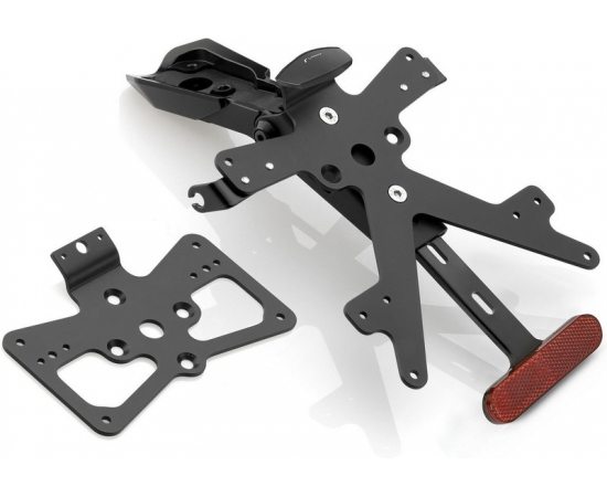 Description : Der aus Aluminium gefertigte Kennzeichenträger Fox ist speziell für das jeweilige Motorradmodell konzipiert. Dadurch passt er sich nicht nur perfekt an die Liniengebung des Motorrads an, sondern punktet zudem durch eine einfache und schnelle Montage. Jedes Kit enthält alle benötigten Montageteile, wobei keine Veränderungen an OEM-Teilen vorgenommen werden müssen. Maximale Funktionalität auf kleinstem Raum und Einhaltung der Zulassungsstandards. Die Fox-Kits enthalten eine SMD-LED-Kennzeichenbeleuchtung, einen Reflektor und Adapter für Rizoma-Blinker, sind verstellbar und mit einem Feststeller zur Fixierung der korrekten Neigung ausgestattet.