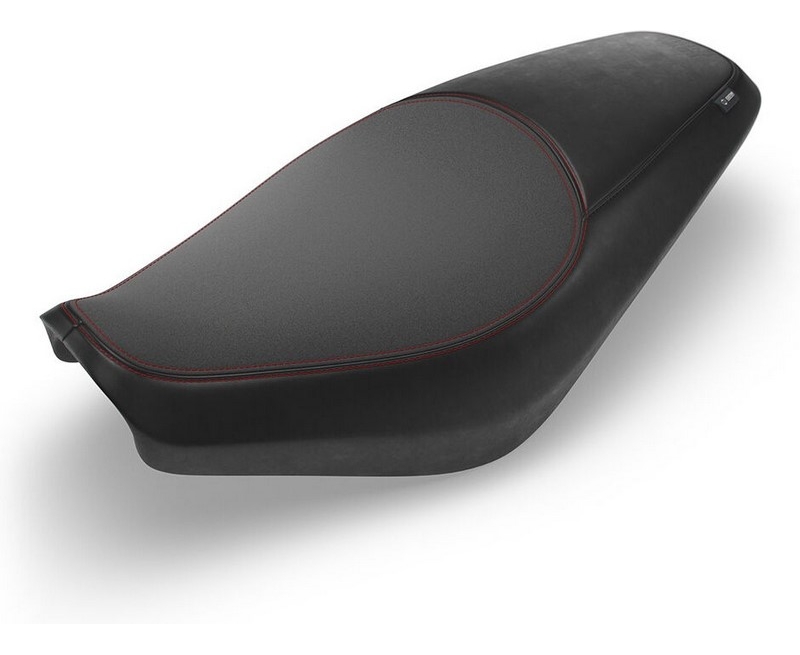 The Custom seat is a more sporty iteration of the Stock seat styling, but brings with it a refinement in quality as well. It has a narrower profile and tighter back end to improve the aesthetic, but these are combined with plush finish and 3D net technology to provide a comfort improvement as well. Red stitching finished this seat off nicely and draws a parallel with the iconic Royal Enfield Cafe Racer seat styling.