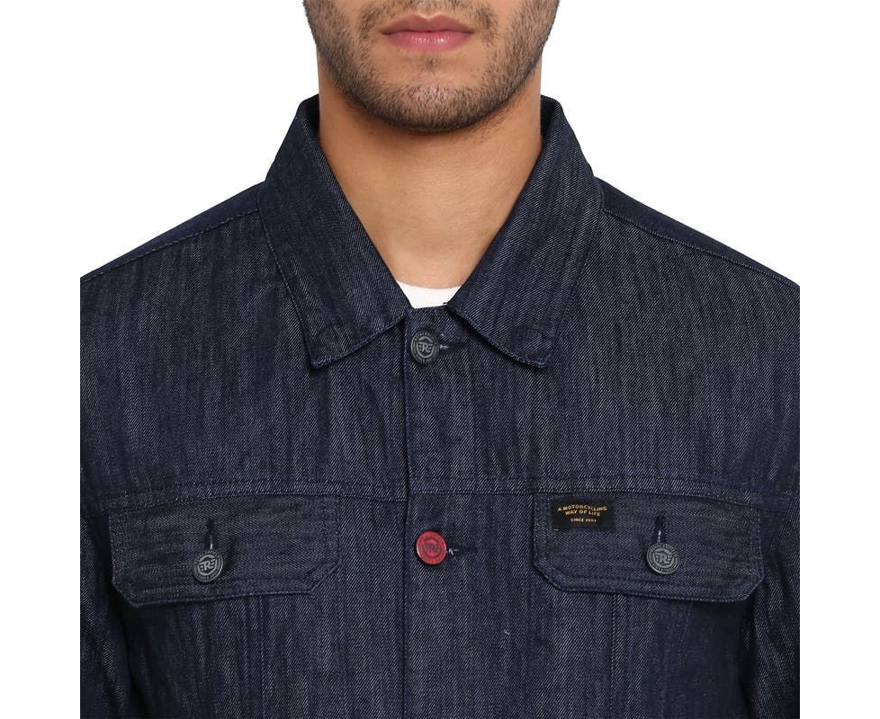A classic denim jacket with Royal Enfield branding on the pocket. It is stylish, durable and a must-have jacket for all your outings.