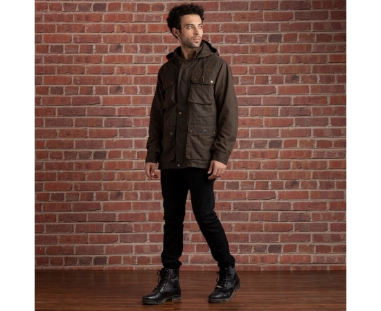 The MLG Long Parka jacket features a detachable hood design. It is made of pure cotton twill fabric and has a cotton and polyester fleece blend inner lining to provide warmth during cold weather. The jacket front features 4 pockets with button closure along with adjustable cuffs and waist for a snug fit.