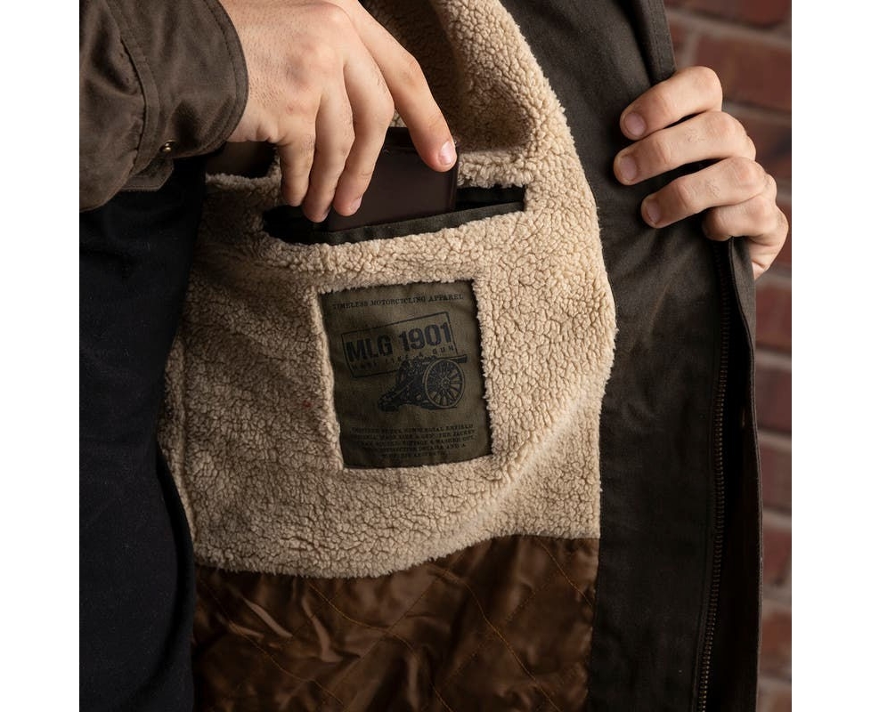 The MLG Long Parka jacket features a detachable hood design. It is made of pure cotton twill fabric and has a cotton and polyester fleece blend inner lining to provide warmth during cold weather. The jacket front features 4 pockets with button closure along with adjustable cuffs and waist for a snug fit.