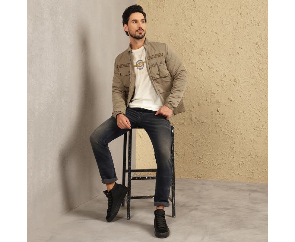 A utility jacket with polyfill inside, this is your safest bet to stay warm on winter days. It has been crafted to combine style, comfort and functionality. Get this jacket to elevate your wardrobe and look sharp in the winter season.nimal in its appeal and authentic in its aesthetic, this jacket is your safest bet for chilly days. With a mild polyfil filling, this jacket is the winter staple you were looking for.