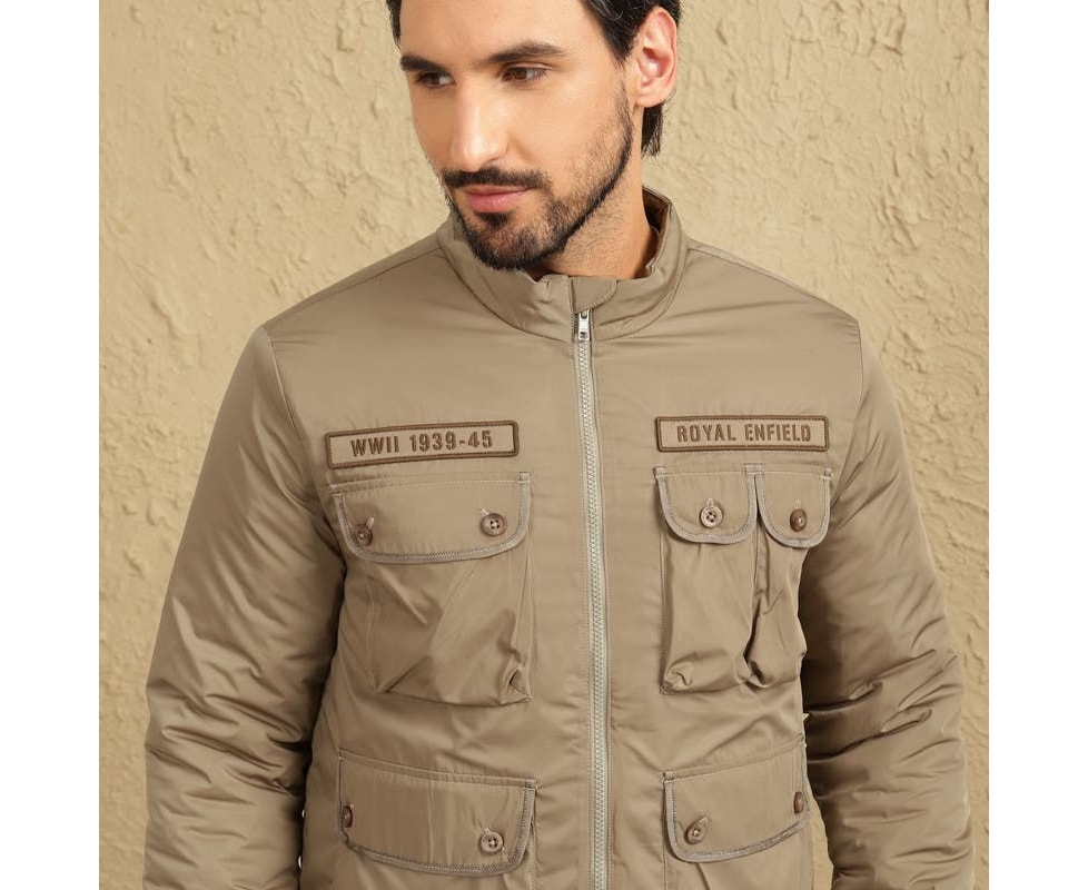 Royal Enfield badge on left side chest panel