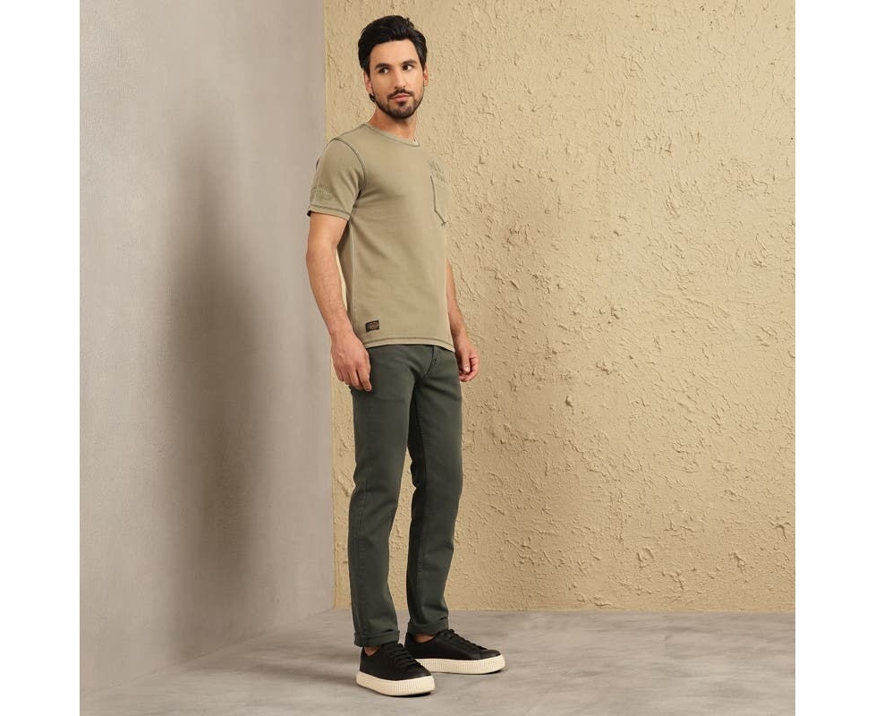Made for those who seek adventure, this pair of jeans is tailored to match your riding style and endure long journeys. Stretchable, comfortable and well-fitted with an olive overdyed look and a soft finish, it will elevate your daily wardrobe.