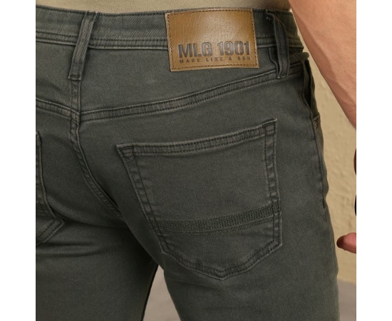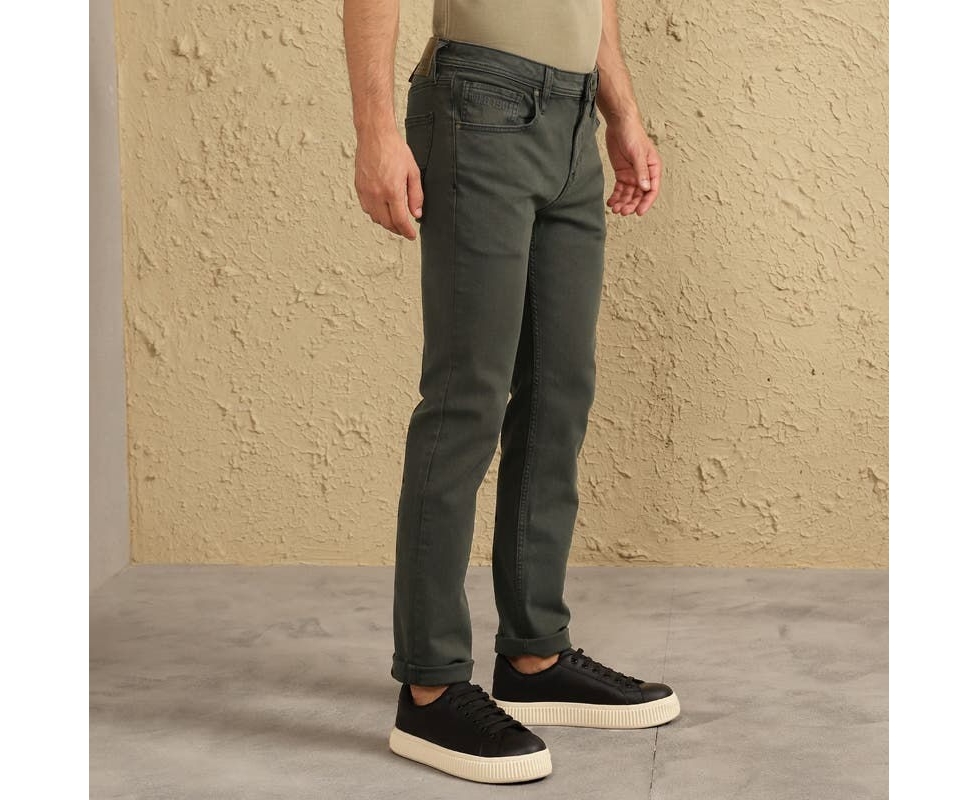 Made for those who seek adventure, this pair of jeans is tailored to match your riding style and endure long journeys. Stretchable, comfortable and well-fitted with an olive overdyed look and a soft finish, it will elevate your daily wardrobe.