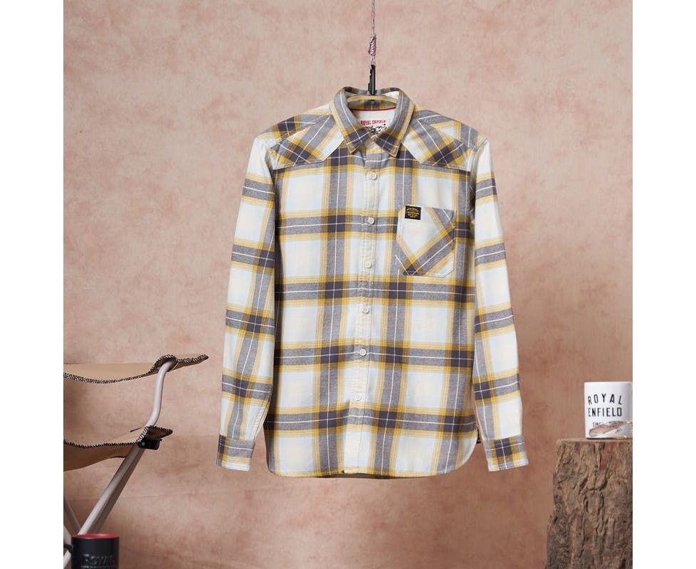 Ride in style with the Royal Enfield Heavy Weight Flannel Shirt. The shirt features light grey checks on a pure cotton twill fabric. It has a patch pocket on the front with the Royal Enfield logo. In addition, the shirt has a button-down collar and shaped yolk to provide movement space.
