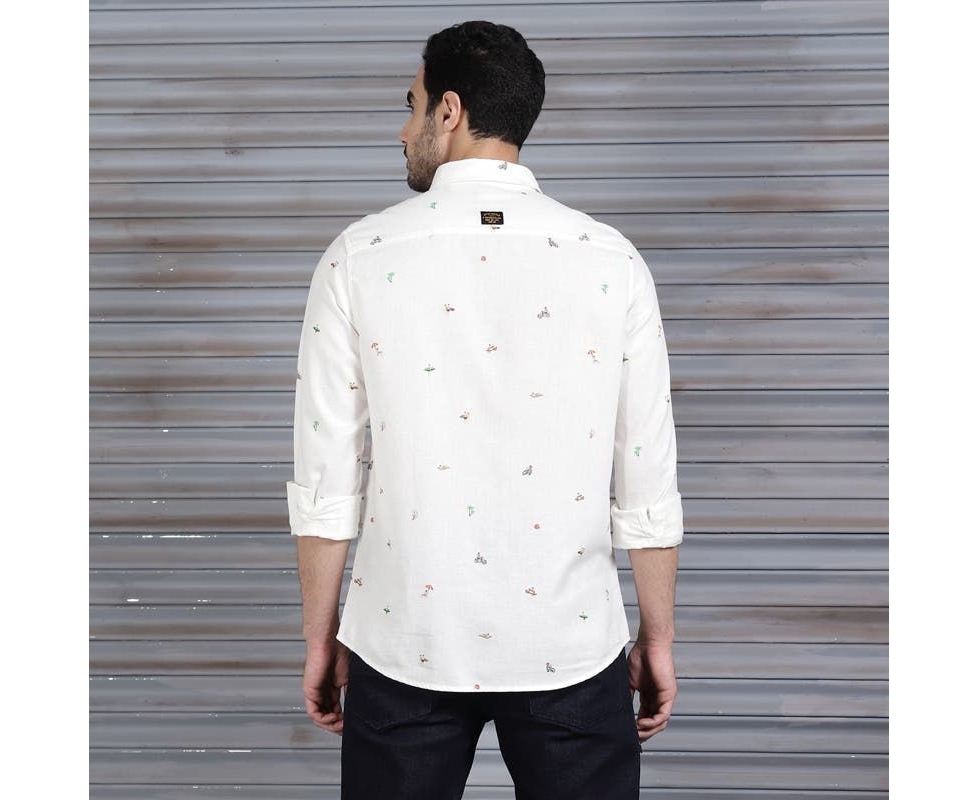 A staple linen shirt but with a twist. The beach inpired Ditsy motifs bring an element of fun to this T-shirt. Enjoy the summer season with this comfortable shirt that keeps you cool.