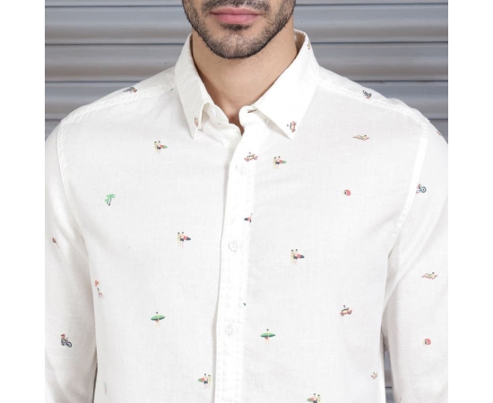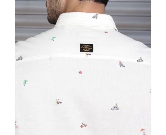 A staple linen shirt but with a twist. The beach inpired Ditsy motifs bring an element of fun to this T-shirt. Enjoy the summer season with this comfortable shirt that keeps you cool.