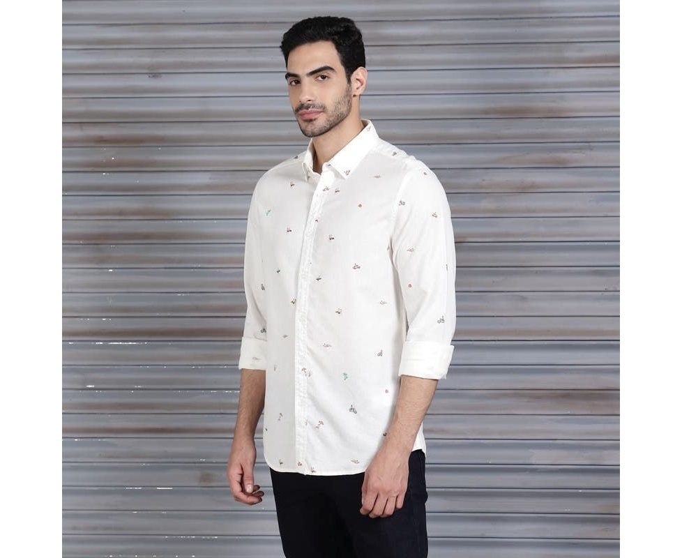 A staple linen shirt but with a twist. The beach inpired Ditsy motifs bring an element of fun to this T-shirt. Enjoy the summer season with this comfortable shirt that keeps you cool.