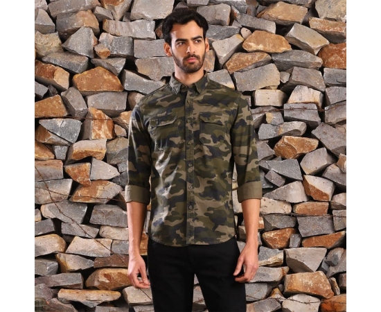 ROYAL ENFIELD Camo All Over Print Shirt - Olive Camo