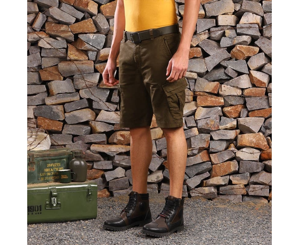 ROYAL ENFIELD Core Solid Cargo Shorts - Khaki