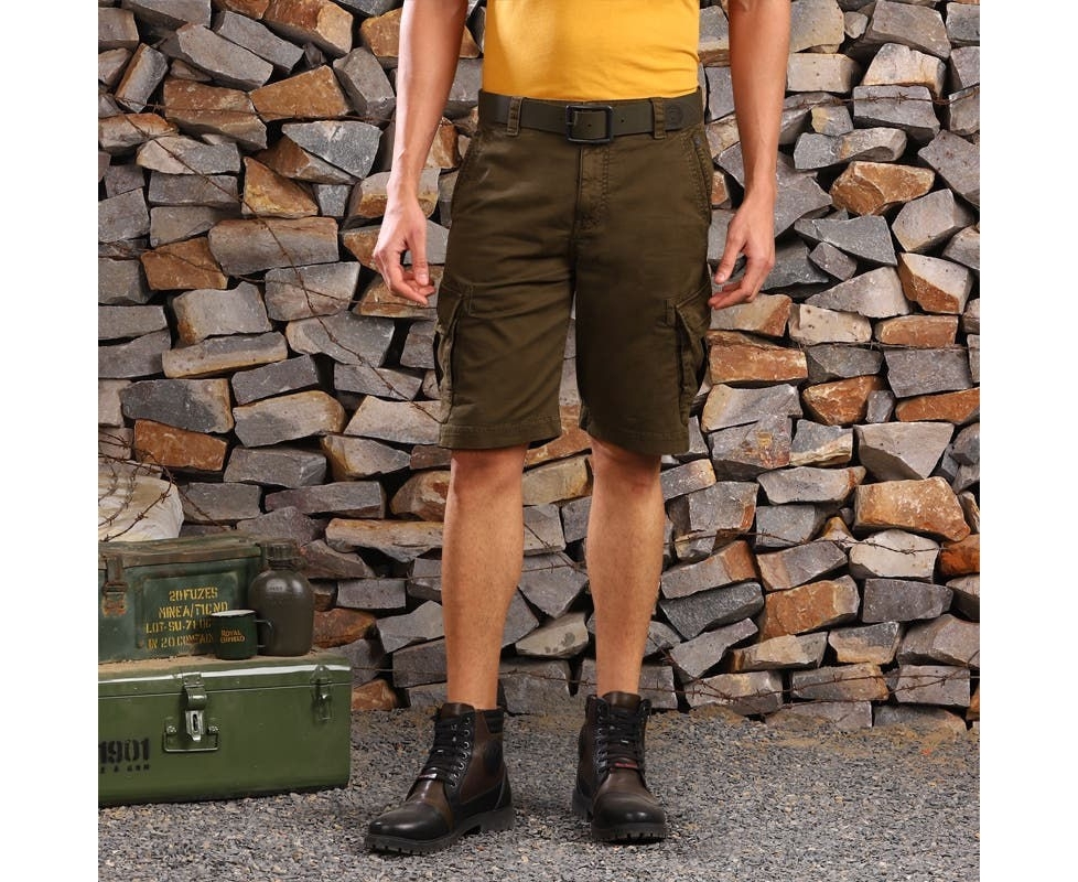 ROYAL ENFIELD Core Solid Cargo Shorts - Khaki