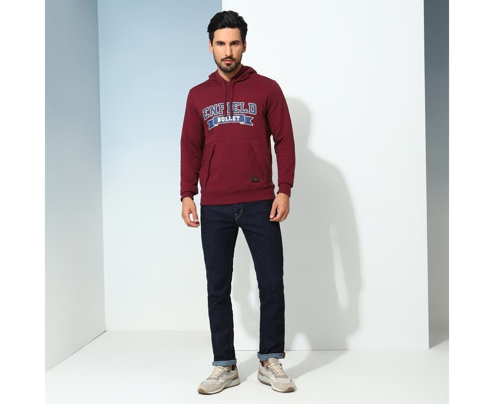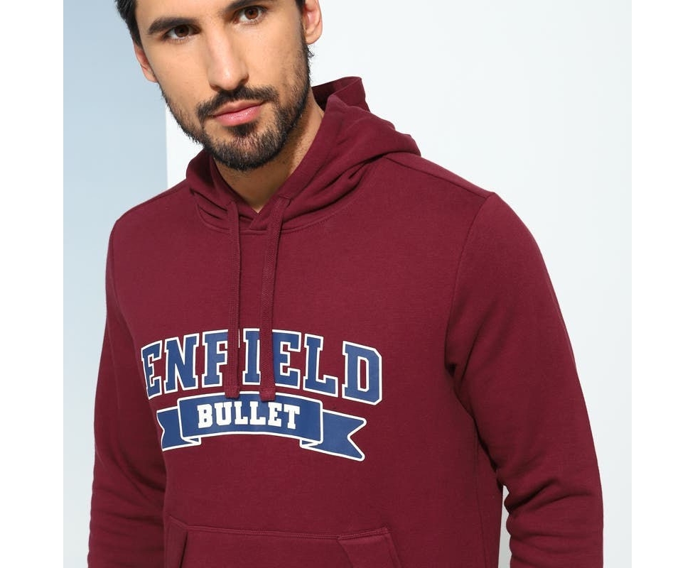 Embrace casual elegance with the Royal Varsity Hoodie. This cotton-poly hoodie was engineered keeping your comfort in mind and showcases the iconic Enfield Bullet print on the chest, giving it a sporty, varsity aesthetic.