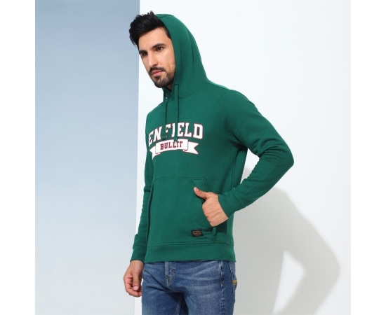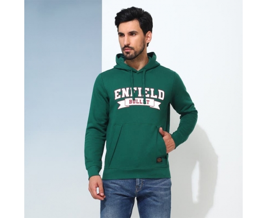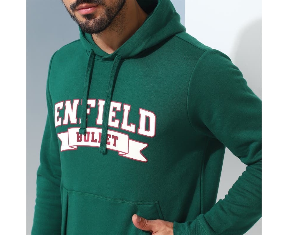 Embrace casual elegance with the Royal Varsity Hoodie. This cotton-poly hoodie was engineered keeping your comfort in mind and showcases the iconic Enfield Bullet print on the chest, giving it a sporty, varsity aesthetic.
