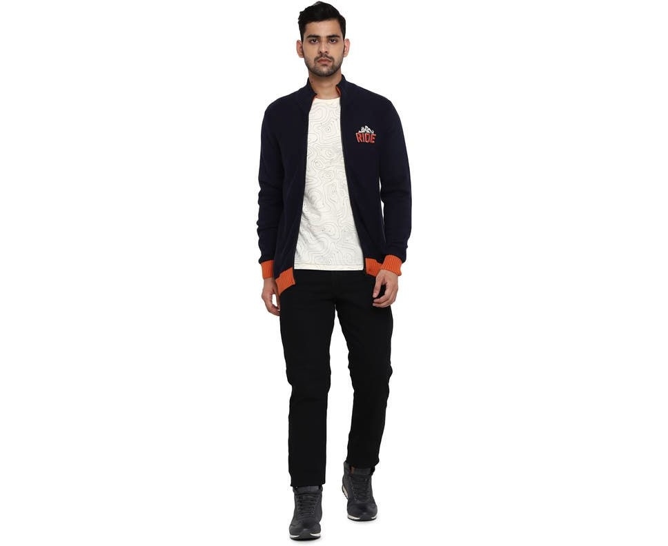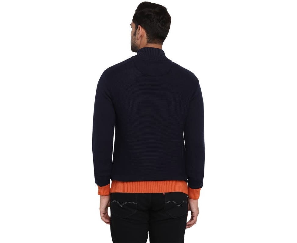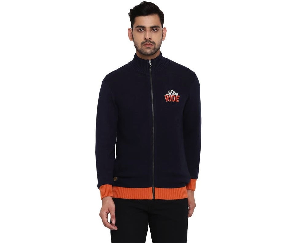 ROYAL ENFIELD High Neck Fz Sweater - Navy