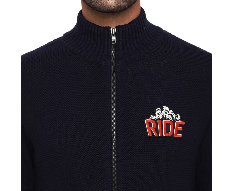 ROYAL ENFIELD High Neck Fz Sweater - Navy